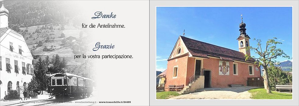 Wir danken von Herzen den Rettungskräften vom Weißen Kreuz, dem Hausarzt Herrn Dr. Alex Mitterhofer sowie den Ärzten und dem Pflegepersonal der Abteilung Medizin und dem psychologischen Dienst am Krankenhaus Bruneck.