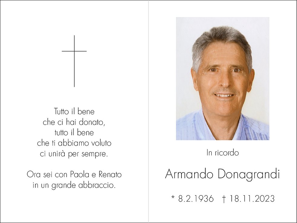Lo annunciano la moglie Adele Maria Gabriella, Gloria con Simone e Federico, Armanda, i nipoti Giorgio e Matteo, i parenti e gli amici tutti.