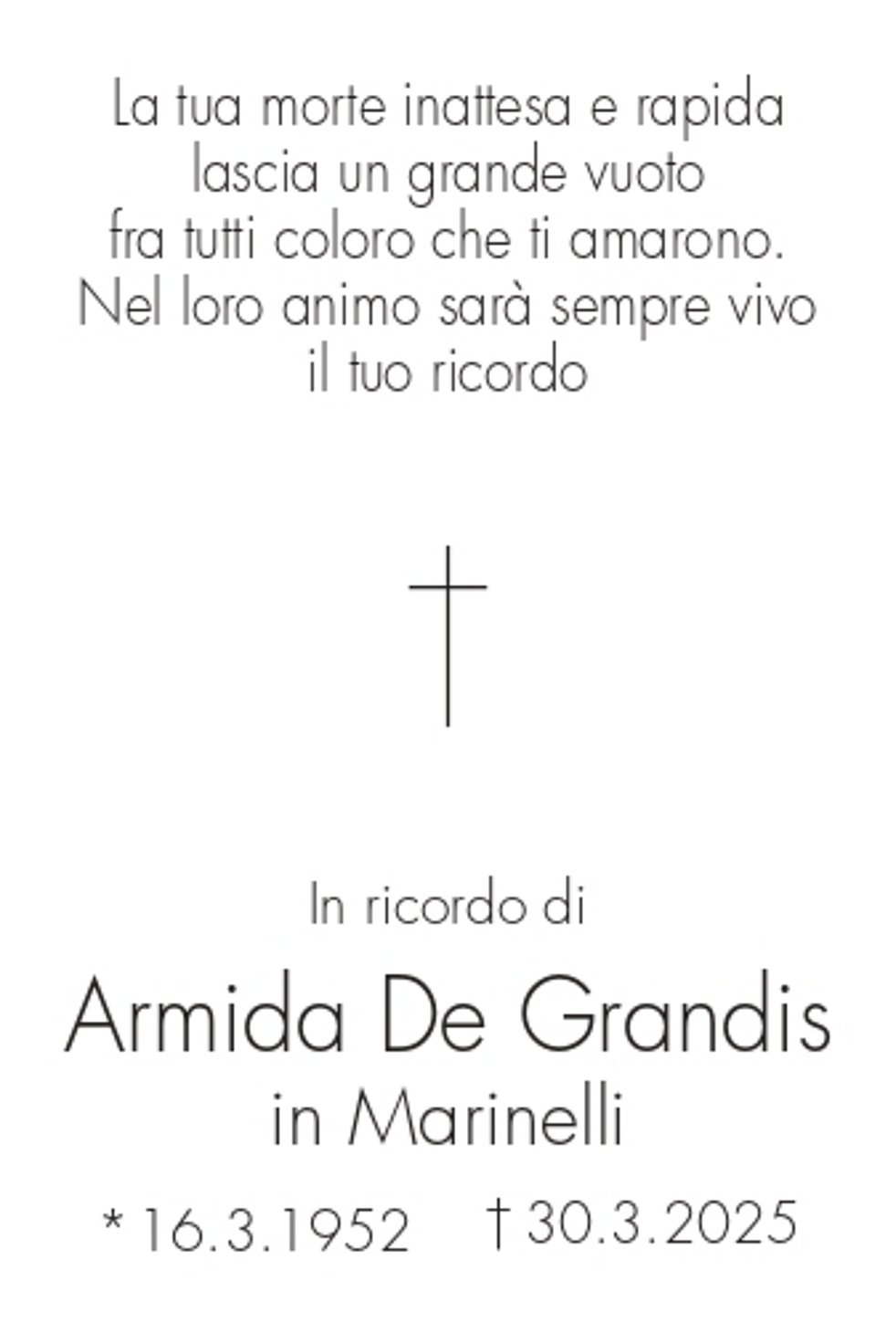 La S. Messa in suffragio verrà celebrata giovedì, 3 aprile alle ore 14.30 nella chiesa parrocchiale San Giovanni Bosco, indi la nostra cara verrà cremata.