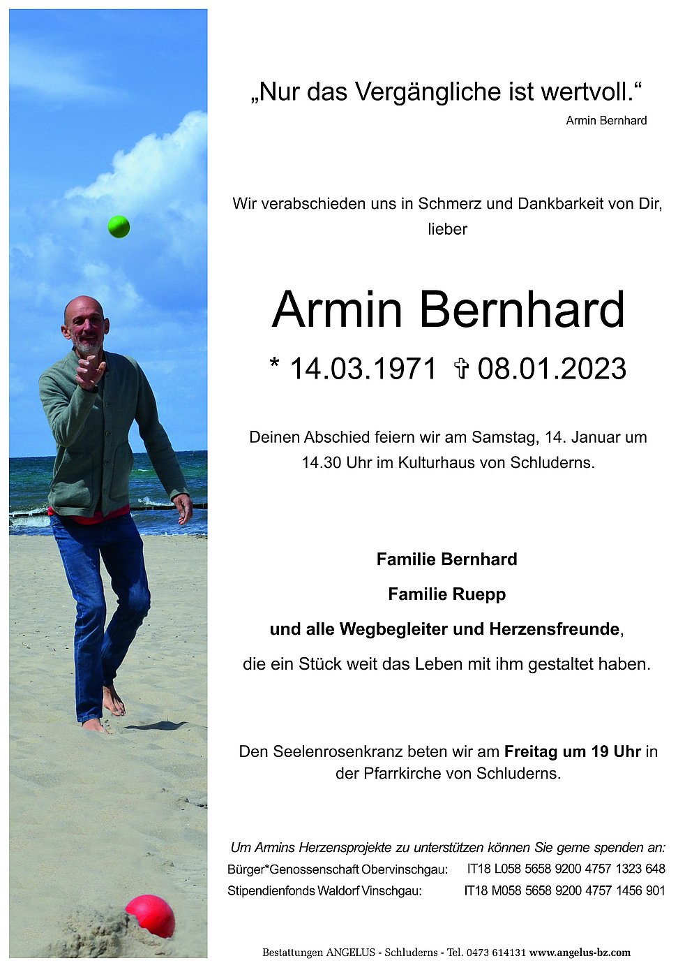 Lieber Armin,wir sind unendlich traurig über deinen Tod,Du warst so ein lieber,feiner Mensch und es ist unheimlich schwer zu akzeptieren,dass du so früh sterben musstest.Den Trauerfamilien gilt unser tief empfundenes Mitgefühl.