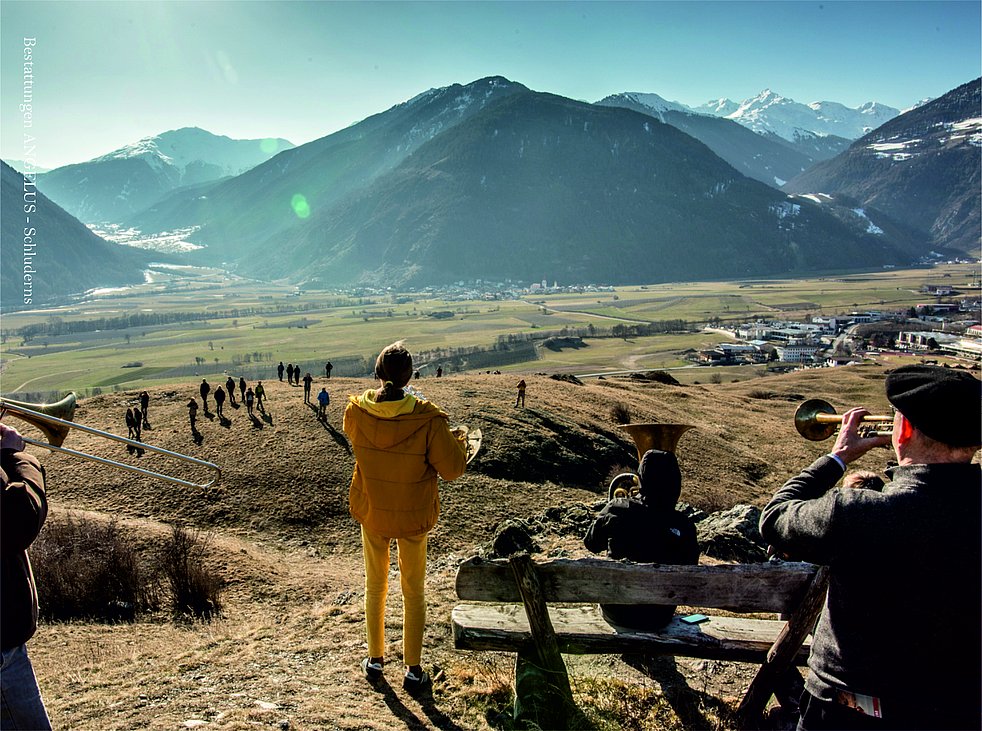 In Kindergorten hobmr gonz viele Busselen in Himmel aui gschickt zun Monn und af Schluderns ouni zu insrer Christiane und zur Anna "