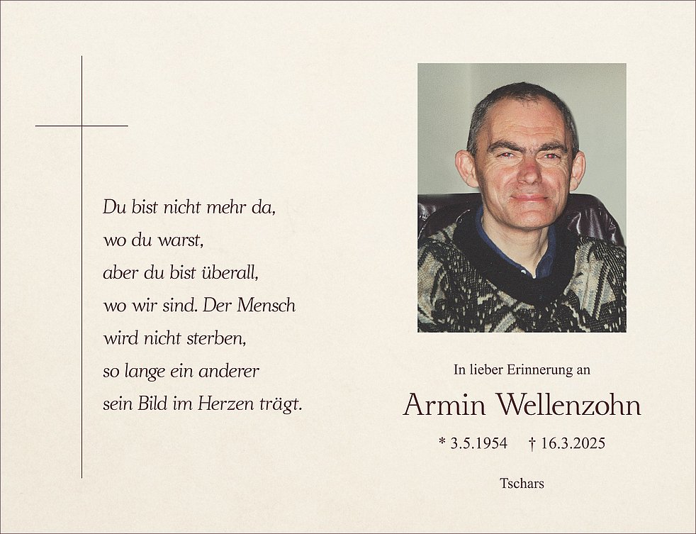 Mit Traurigkeit im Herzen, aber dankbar für die Zeit, die wir gemeinsam verbringen durften, nehmen wir Abschied von unserem Bruder, Schwager, Onkel und Cousin, Herrn