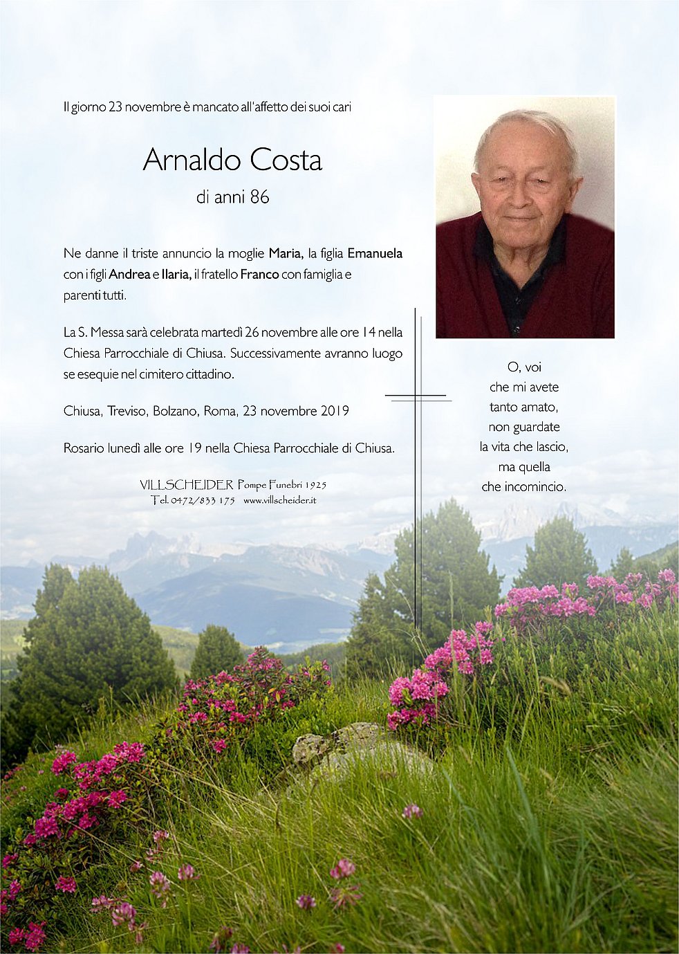 Nell’apprendere la notizia del decesso del vostro caro desideriamo esprimere le nostre sentite condoglianze. Fam Trocker Richard