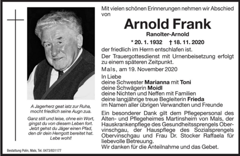 Den Trauergottesdienst feiern wir am Donnerstag, den 31. Dezember