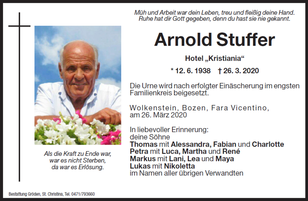 Die Urne wird nach erfolgter Einäscherung im engsten Familienkreis beigesetzt.