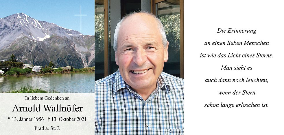 Am Montag, 18. Oktober, um 13.30 Uhr beten wir den Rosenkranz; um 14 Uhr feiern wir den Begräbnisgottesdienst mit anschließender Verabschiedung in der Pfarrkirche von Prad.