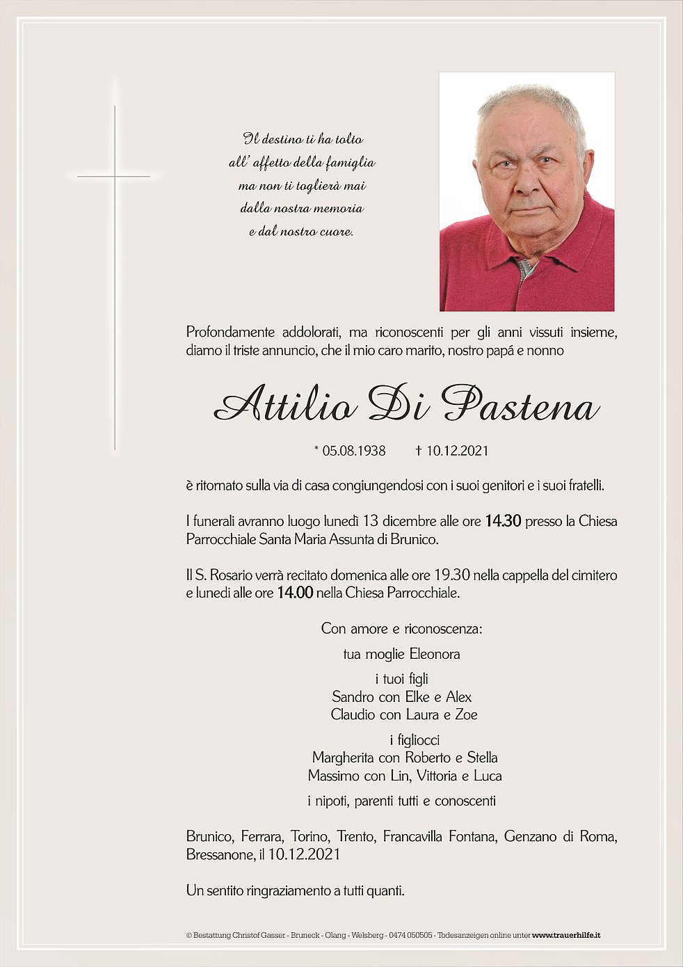 Profondamente addolorati, ma riconoscenti per gli anni vissuti insieme, diamo il triste annuncio, che il mio caro marito, nostro papá e nonno
