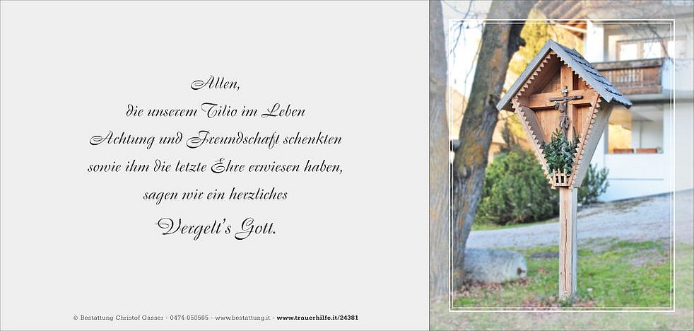 Tilio ist ab Montag 15 Uhr in der Friedhofskapelle von St. Lorenzen aufgebahrt.
