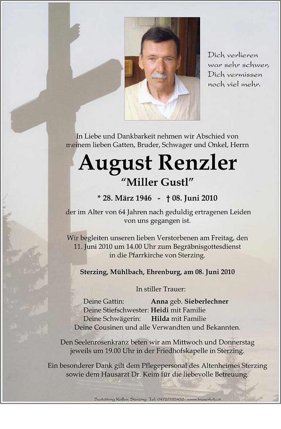 um 14.00 Uhr zum Begräbnisgottesdienst in die Pfarrkirche von Sterzing.