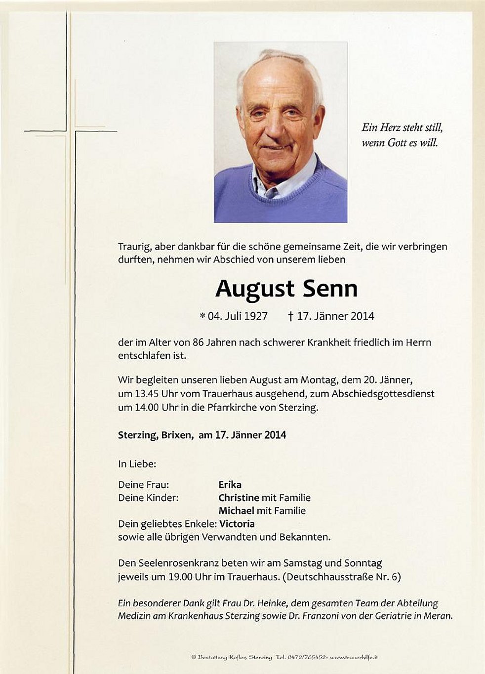 Wir begleiten unseren lieben August am Montag, dem 20. Jänner,