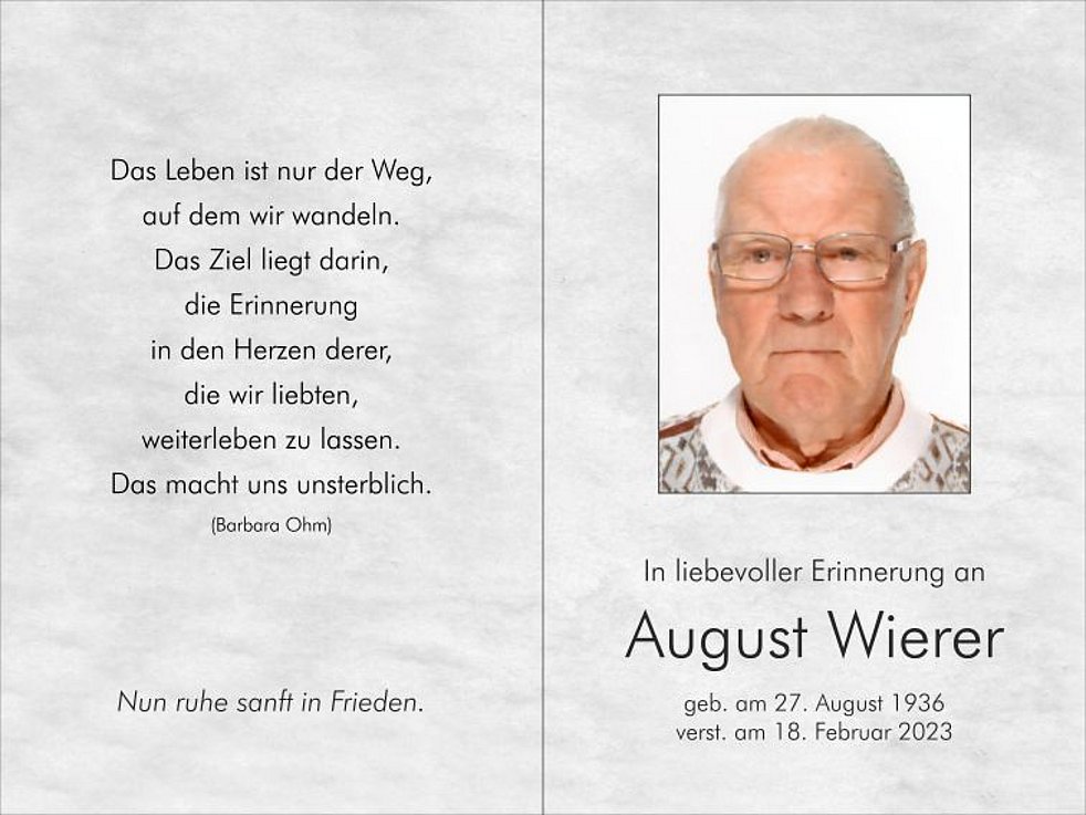 Die Verabschiedung findet auf ausdrücklichen Wunsch des Verstorbenen im engsten Familienkreis statt.