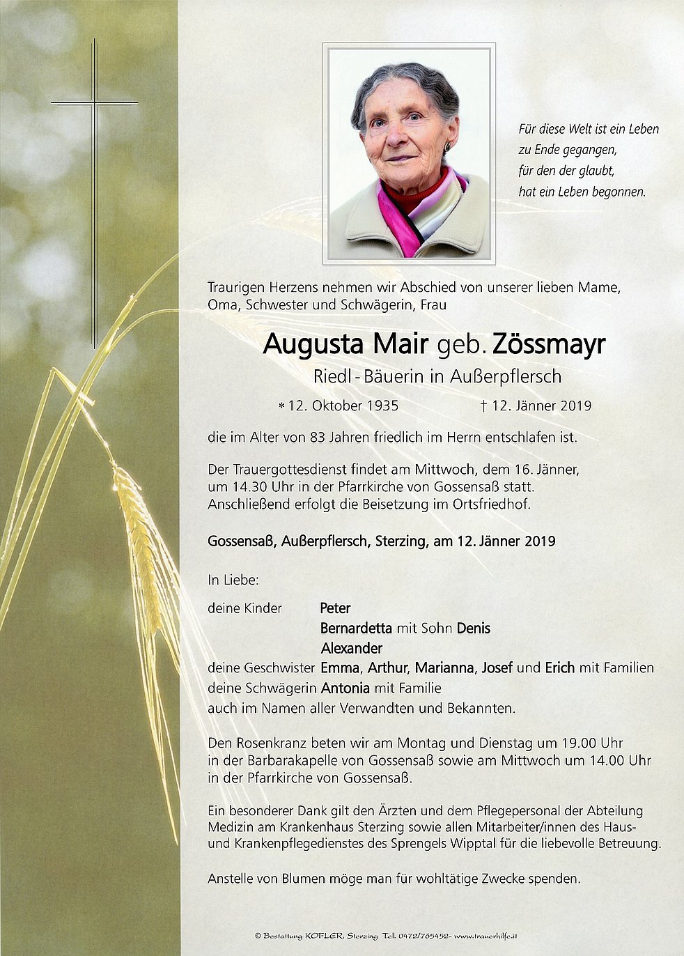Der Trauergottesdienst findet am Mittwoch, dem 16. Jänner, um 14.30 Uhr in der Pfarrkirche von Gossensaß statt. Anschließend erfolgt die Beisetzung im Ortsfriedhof.