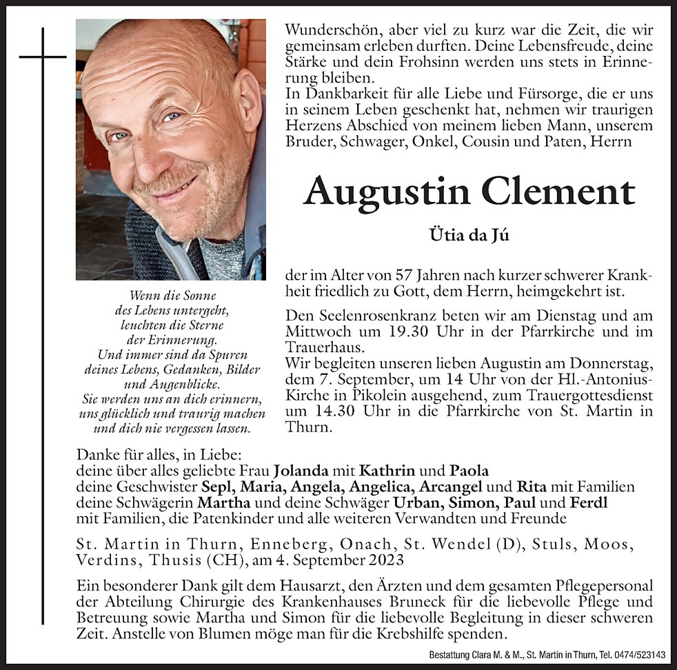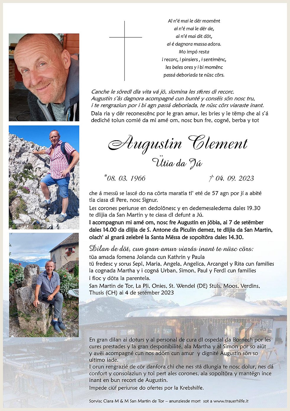 Angelica Arcangel e a düc i familiars de cör condolianzes ! .Che osc caro Augustin pois palse tla pesc de Chel Bel Die ! Paolina y Max Clara