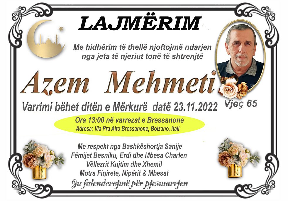 Trauerfeier: 23.11. - 13:00 Uhr Brixen; Bressanone