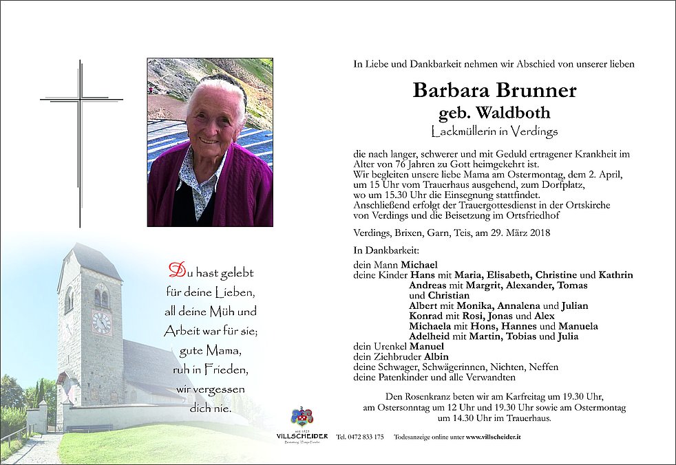 Wir begleiten unsere liebe Mama am Ostermontag, dem 2. April,