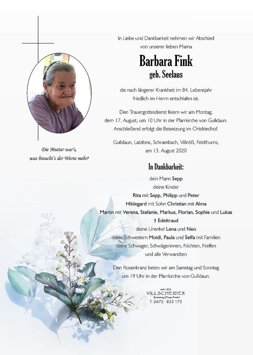 Begräbnisgottesdienst: 17.08. - 10:00 Uhr Gufidaun