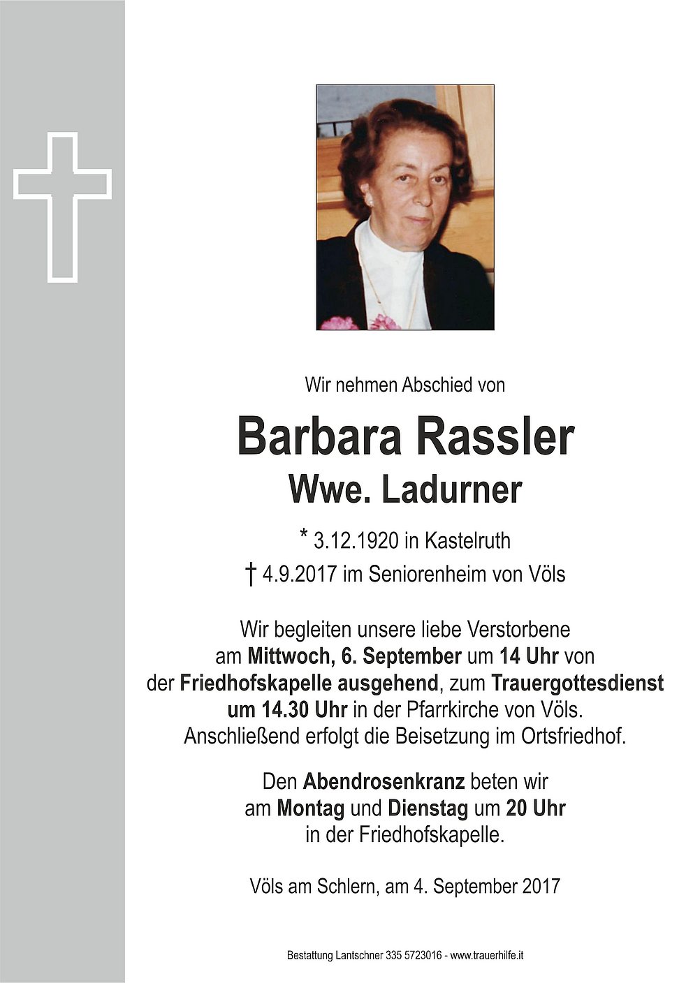 Begräbnisgottesdienst: 05.09. - 14:30 Uhr Pfarrkirche von Völs am Schlern