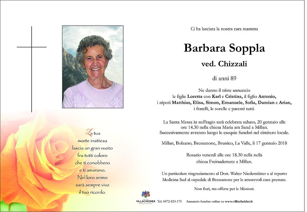 Medicina Sud al ospedale di Bressanone per le amorevoli cure prestate.