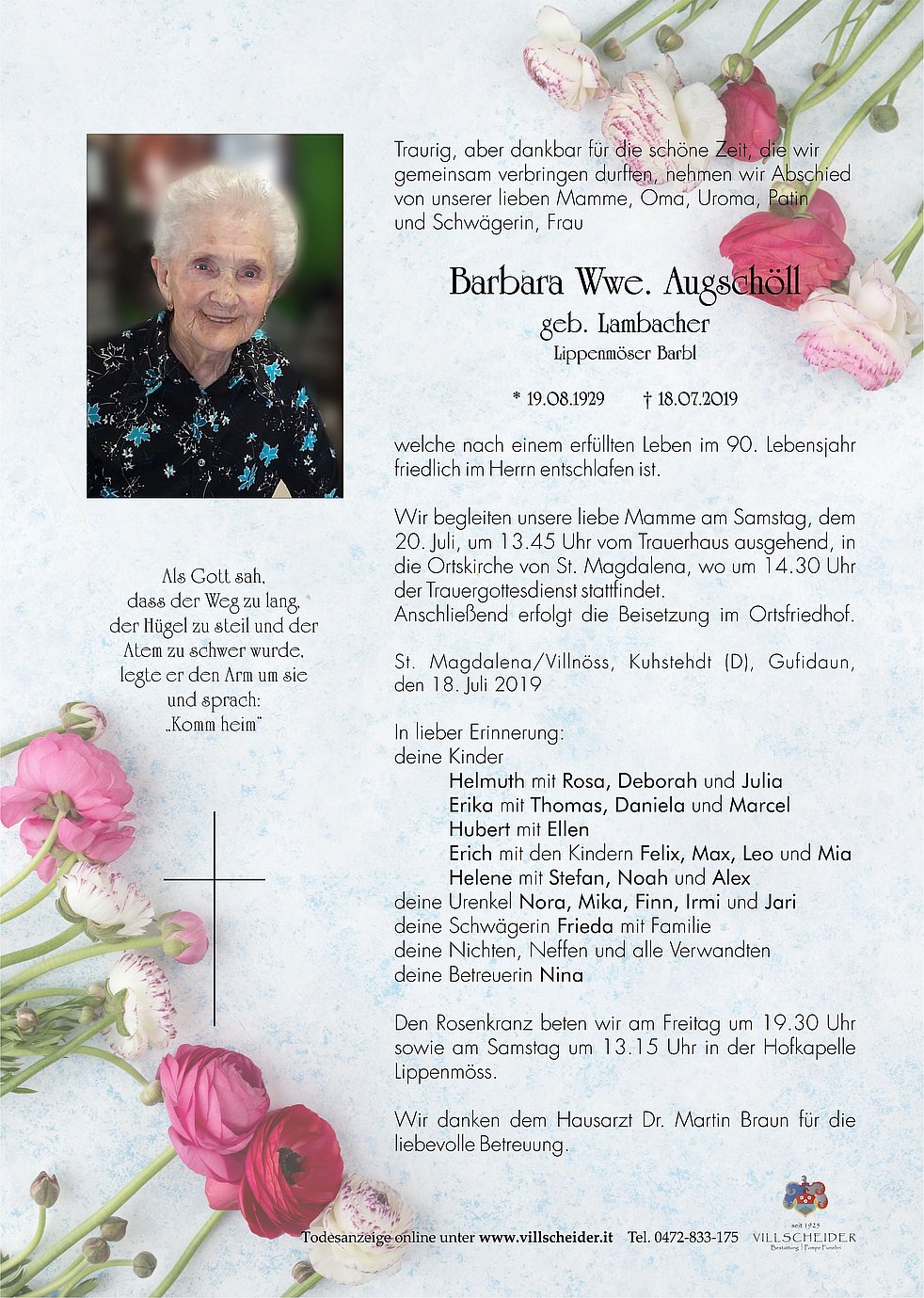 Begräbnisgottesdienst: 20.07. - 14:30 Uhr St. Magdalena/Villnöss