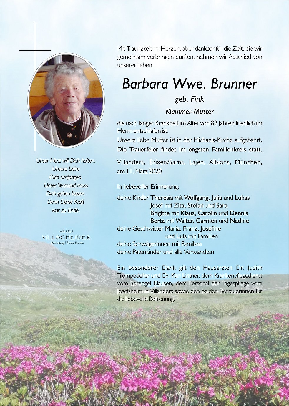Liebe Theresia,Wir möchten dir unser aufrichtiges Mitgefühl und unsere Anteilnahme übermitteln.