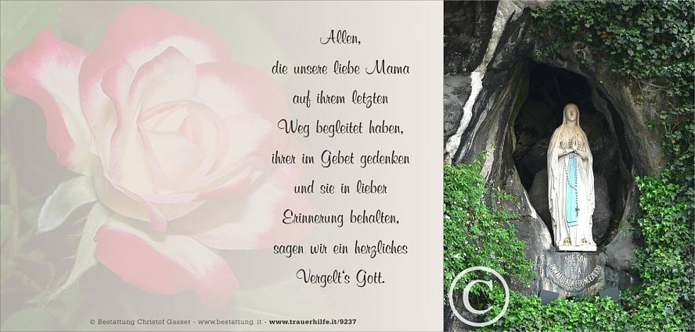 Vergelt’s Gott allen, die an den Seelenrosenkränzen und an der Beerdigung teilnehmen und sie in guter Erinnerung behalten.