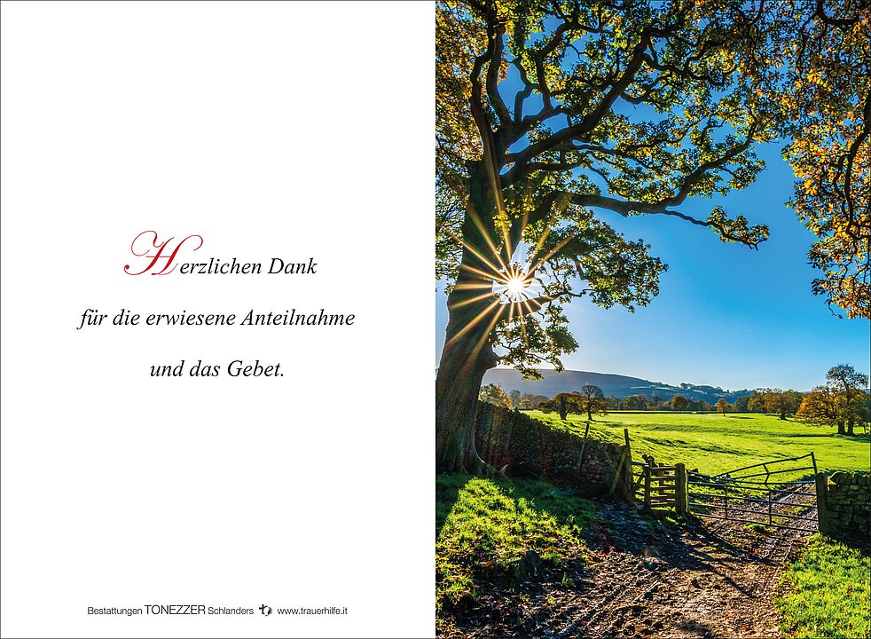 Ein besonderer Dank gilt unserem Hausarzt Dr. Michele Fambri, dem Hauspflegedienst des Sprengels Mittelvinschgau und der Pflegerin Nina für die liebevolle Betreuung.