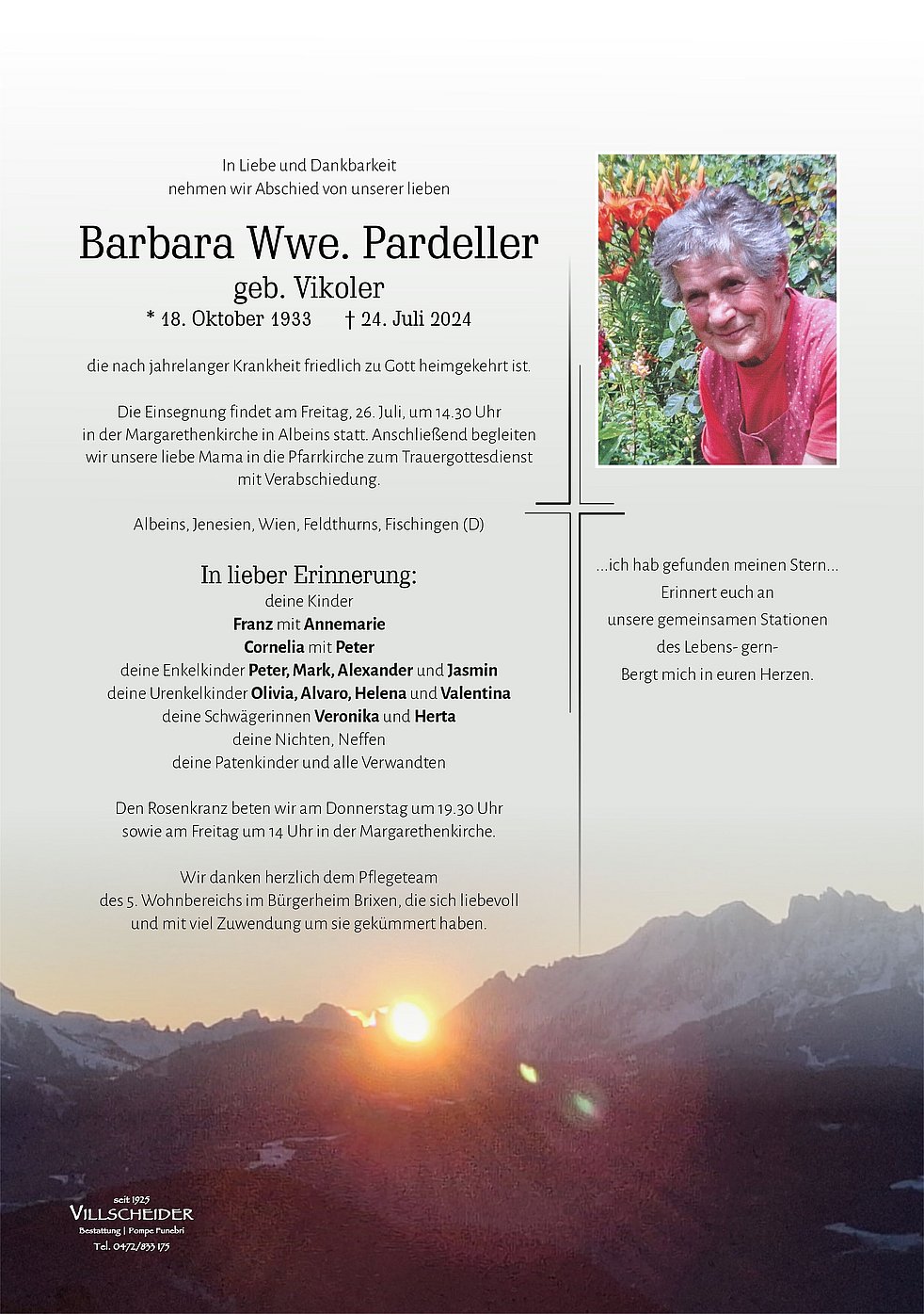 Begräbnisgottesdienst: 26.07. - 14:30 Uhr Albeins