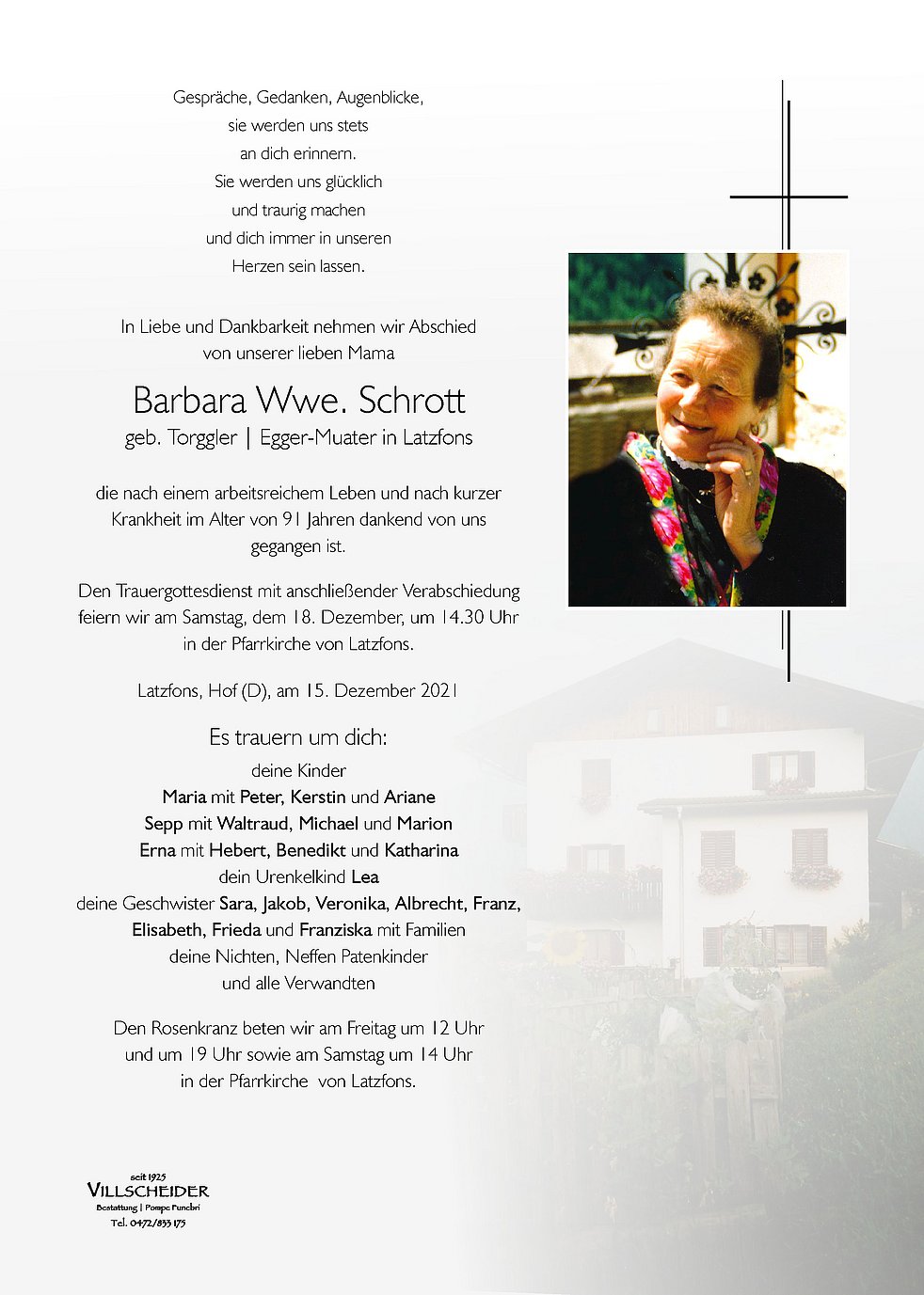 Trauerfeier: 18.12. - 14:30 Uhr Latzfons
