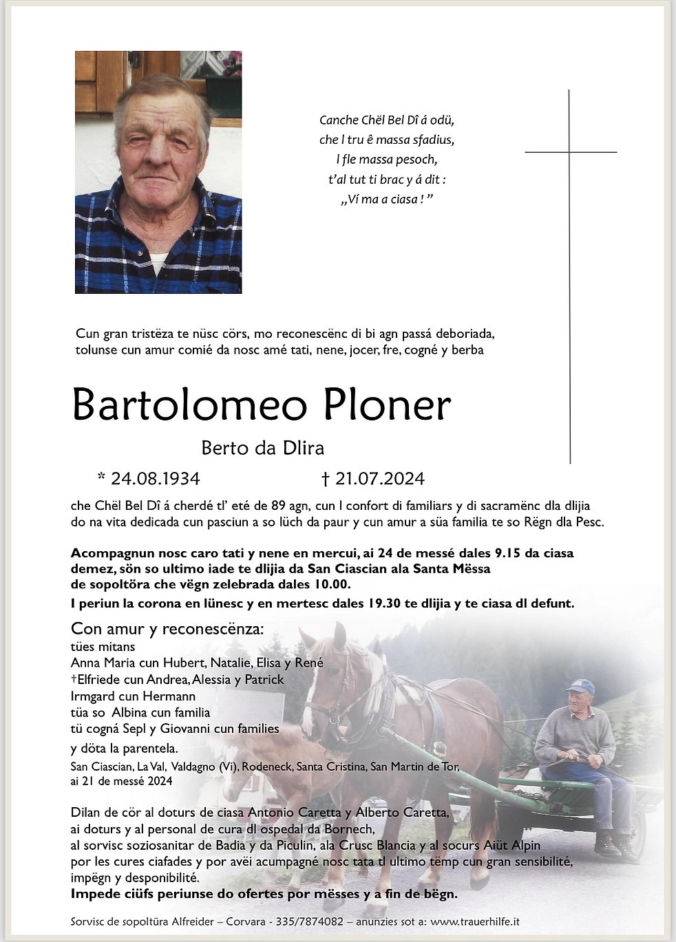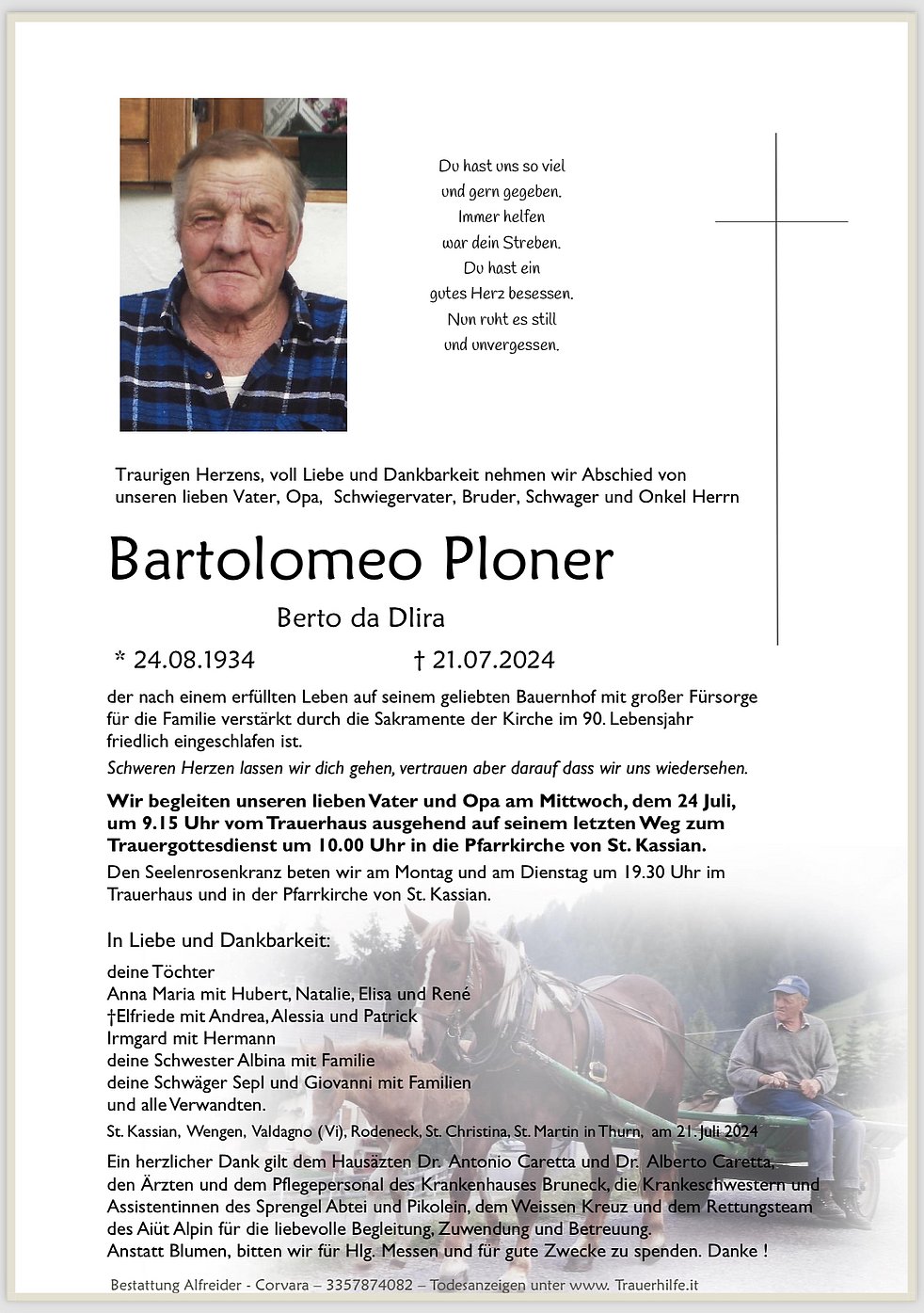 Verabschiedung: 24.07. - 10:00 Uhr Pfarrkirche St. Kassian