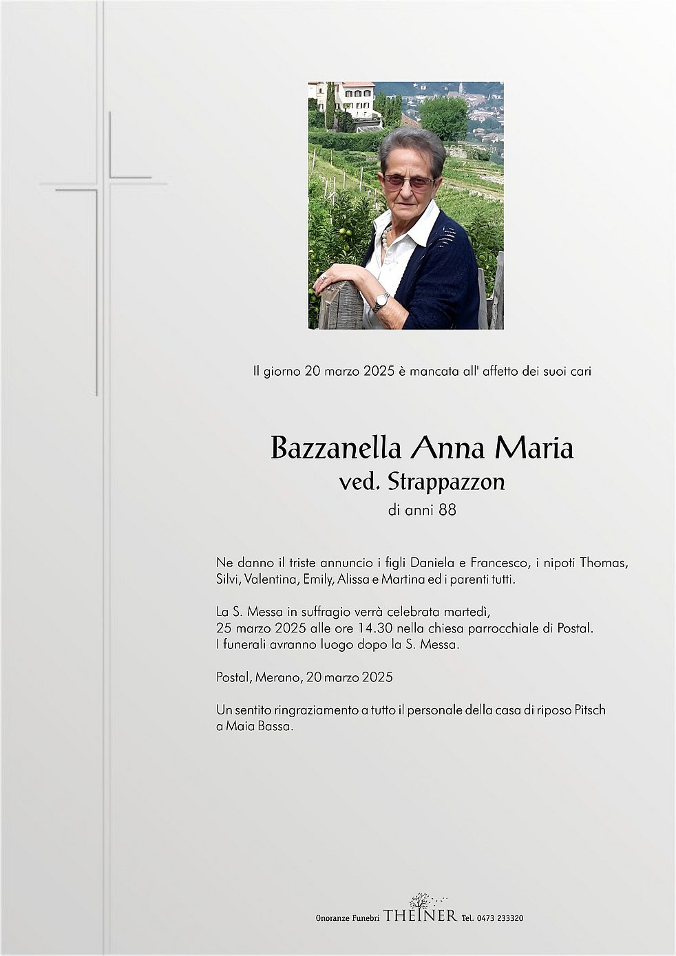 Begräbnisgottesdienst: 25.03. - 14:30 Uhr Postal - Burgstall