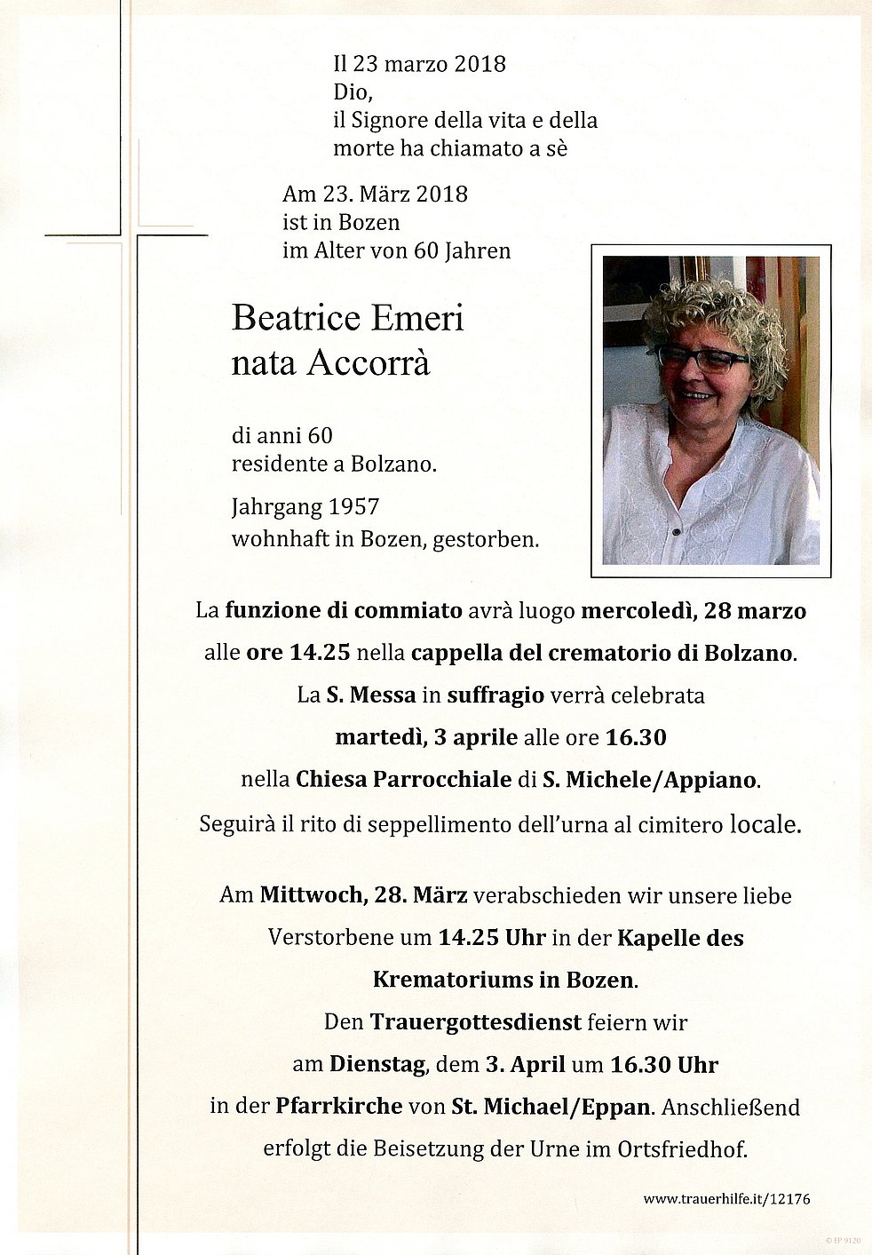 La funzione di commiato avrà luogo mercoledì, 28 marzo alle ore 14.25 nella cappella del crematorio di Bolzano.