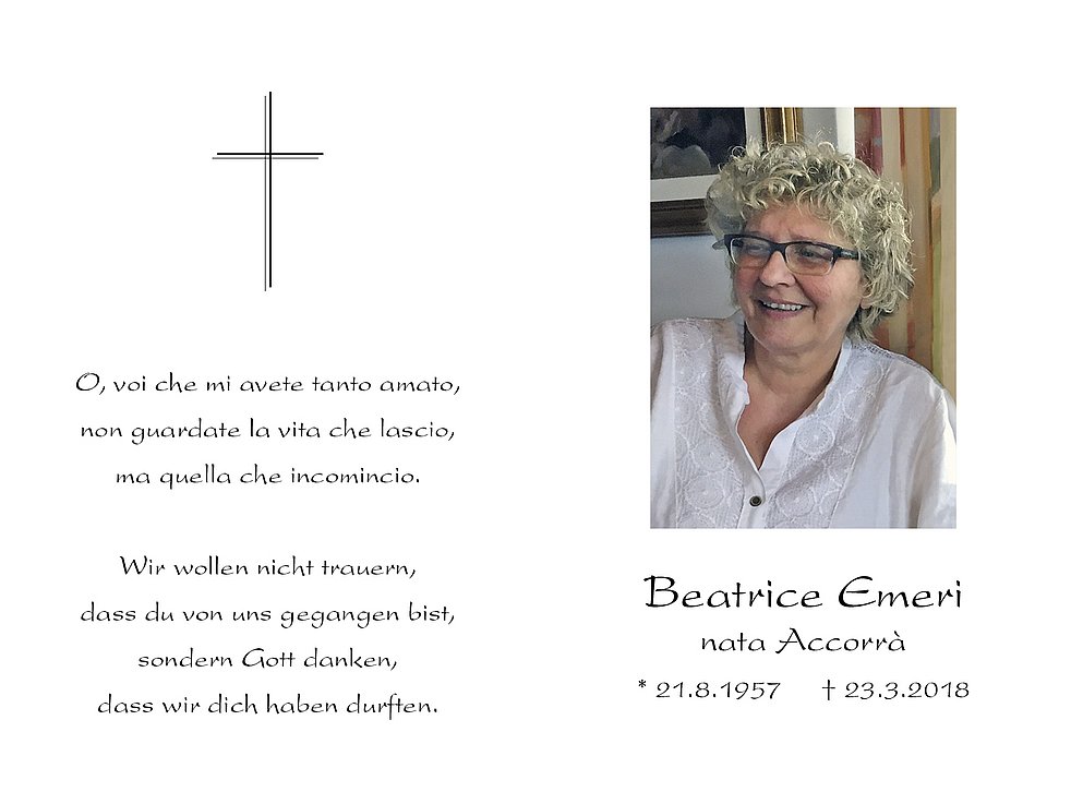 Am Mittwoch, 28. März verabschieden wir unsere liebe Verstorbene um 14.25 Uhr in der Kapelle des Krematoriums in Bozen.