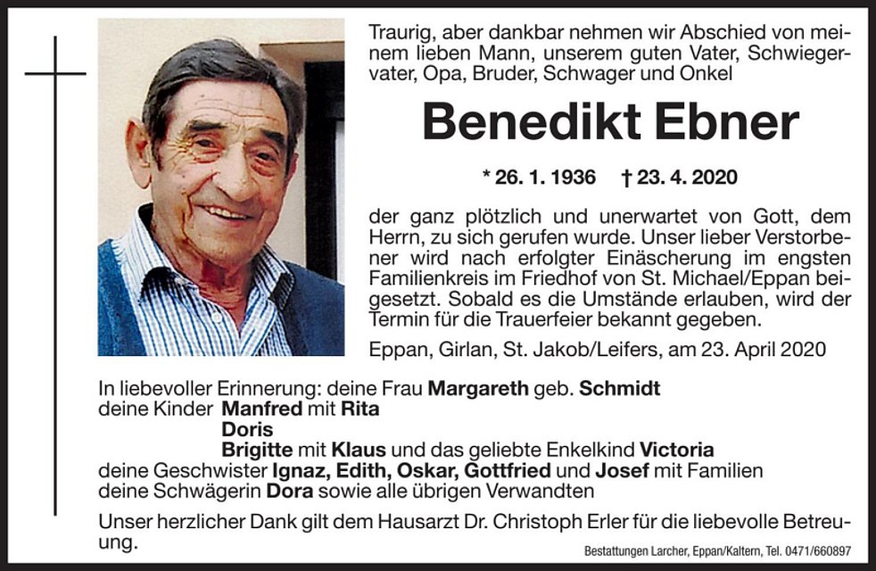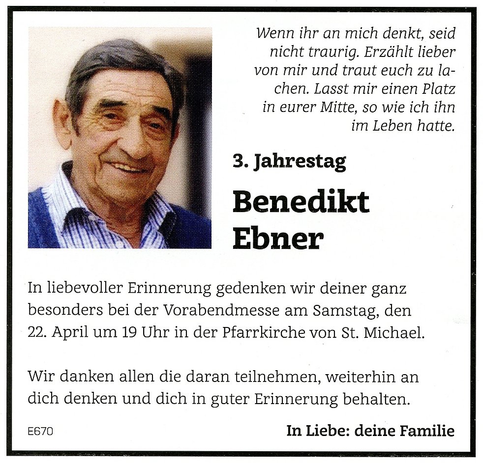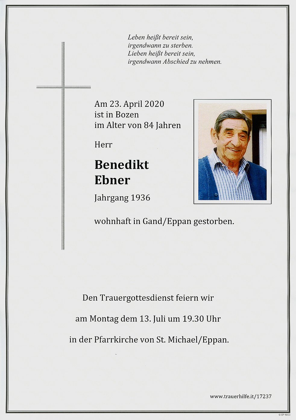 Den Trauergottesdienst feiern wir am Montag dem 13. Juli um 19.30 Uhr in der Pfarrkirche von St. Michael/Eppan