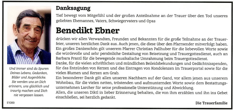 Unser herzlicher Dank gilt dem Hausarzt Dr. Christoph Erler für die liebevolle Betreuung.