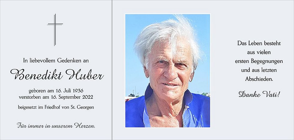 Unser lieber Vati ist ab Sonntagmittag in der Friedhofskapelle von St. Georgen aufgebahrt.