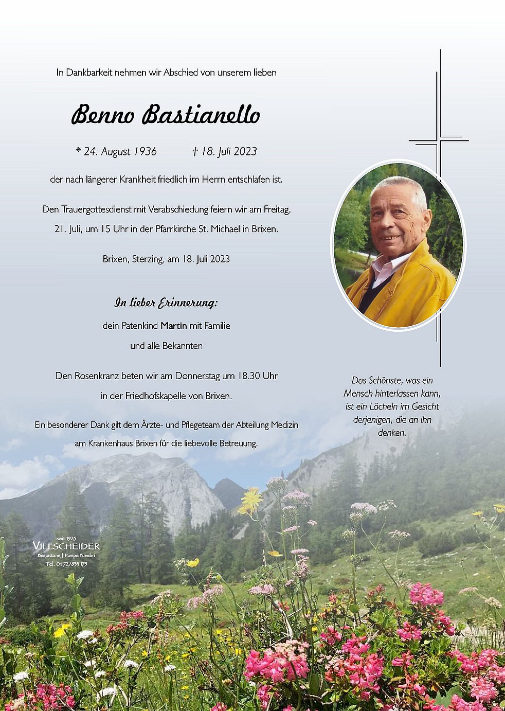 Trauerfeier: 21.07. - 15:00 Uhr Brixen