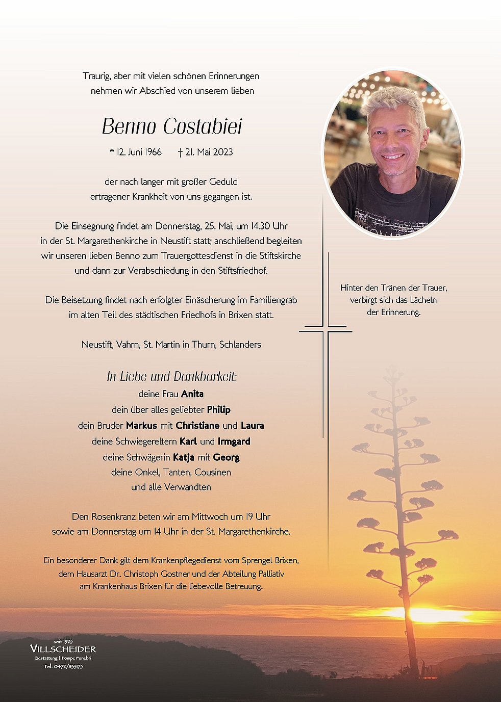 Wenn der Nebel dieser schweren Stunden sich lichtet,wünschen wir Euch ,dass die Erinnerungen an Euren lieben Benno bestimmt werden von Gedanken an glückliche Zeiten,schöne Ereignisse und fröhliche Stunden.