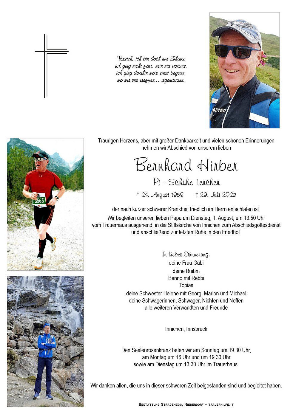 Begräbnisgottesdienst: 01.08. - 14:00 Uhr Innichen