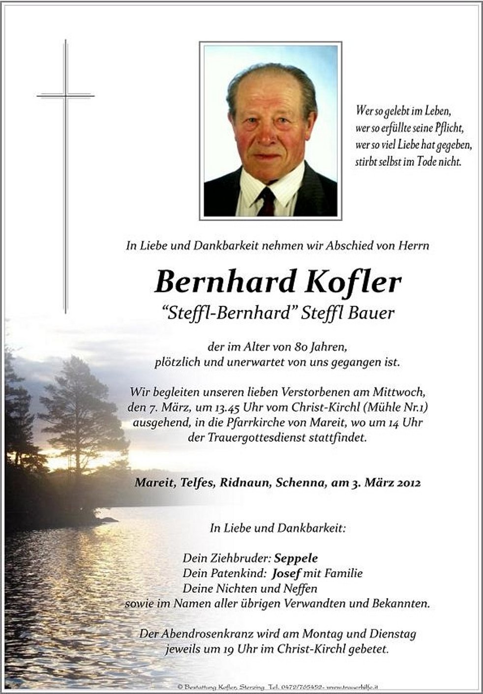 Wir begleiten unseren lieben Verstorbenen am Mittwoch, den 7. März, um 13.45 Uhr