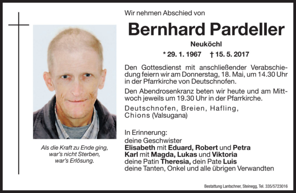 am Donnerstag, 18. Mai um 14.30 Uhr in der Pfarrkirche von Deutschnofen.