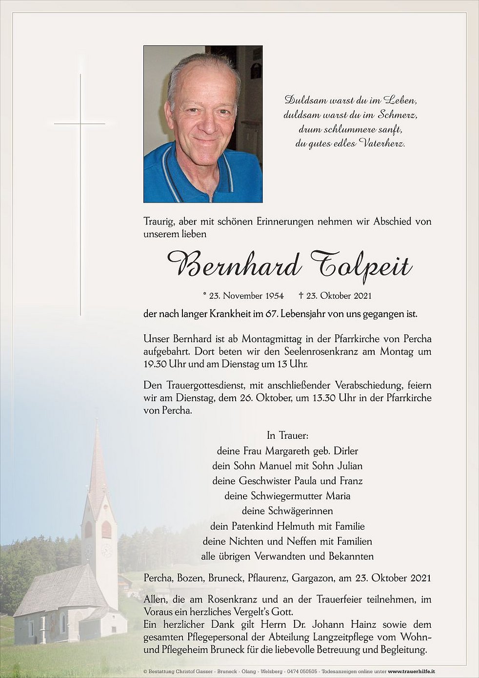 Unser Bernhard ist ab Montagmittag in der Pfarrkirche von Percha aufgebahrt. Dort beten wir den Seelenrosenkranz am Montag um 19.30 Uhr und am Dienstag um 13 Uhr.