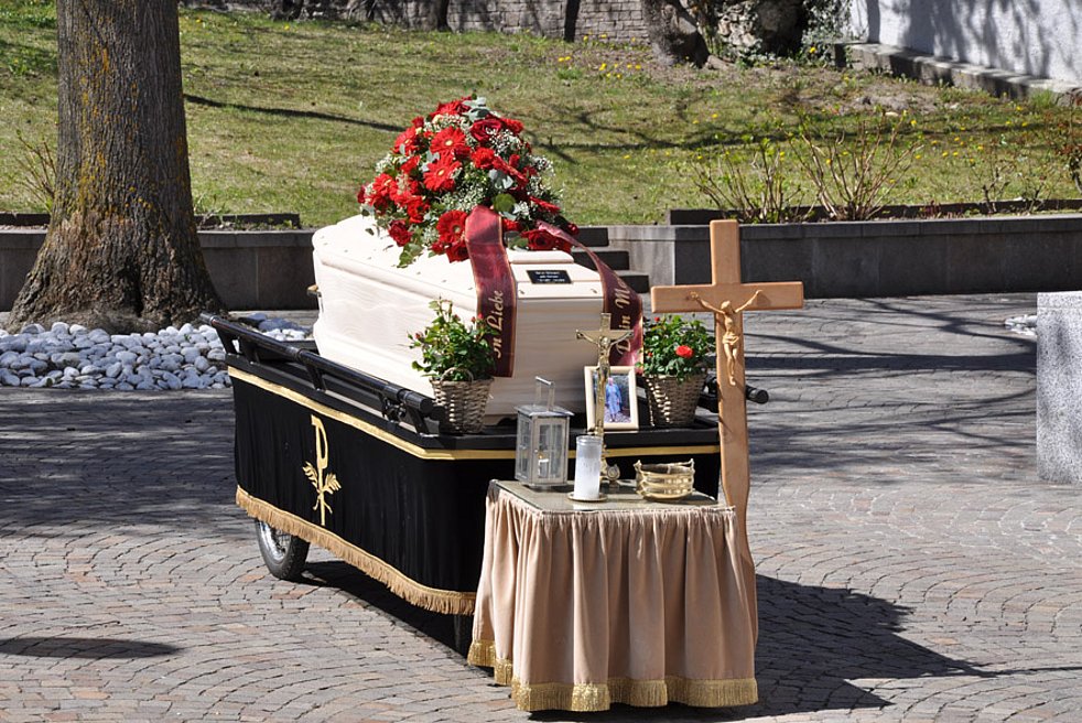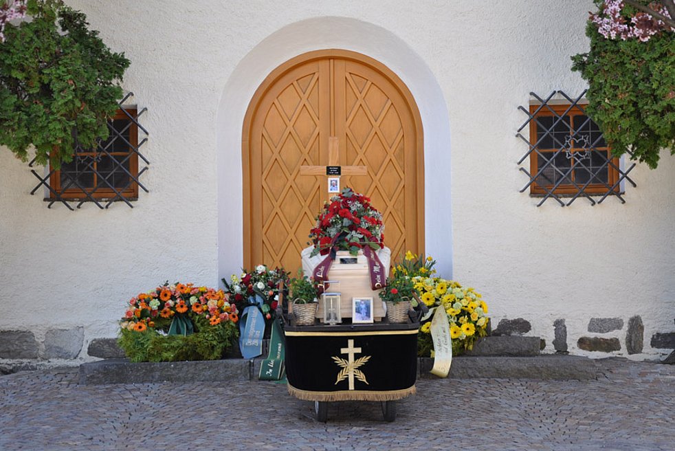 Wir begleiten unsere liebe Verstorbene am Donnerstag, 9. April, um 14.30 Uhr vom Kirchplatz aus zum Begräbnisgottesdienst in die Pfarrkirche und anschließend zur Beerdigung auf den Ortsfriedhof von Kastelbell/Marein.