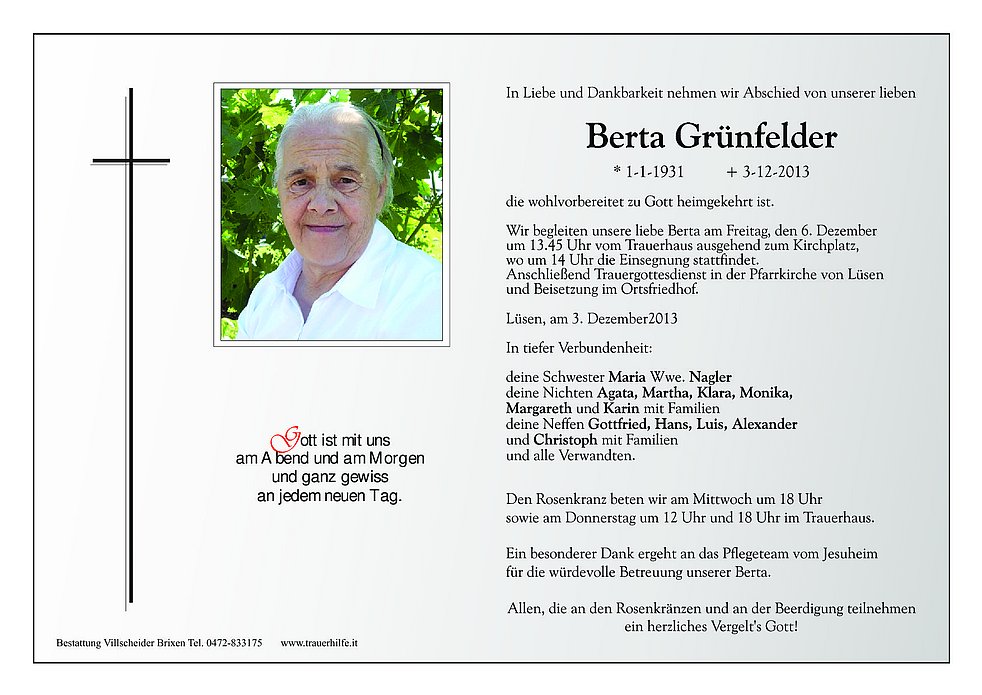 Allen, die an den Rosenkränzen und an der Beerdigung teilnehmen ein herzliches Vergelt's Gott!