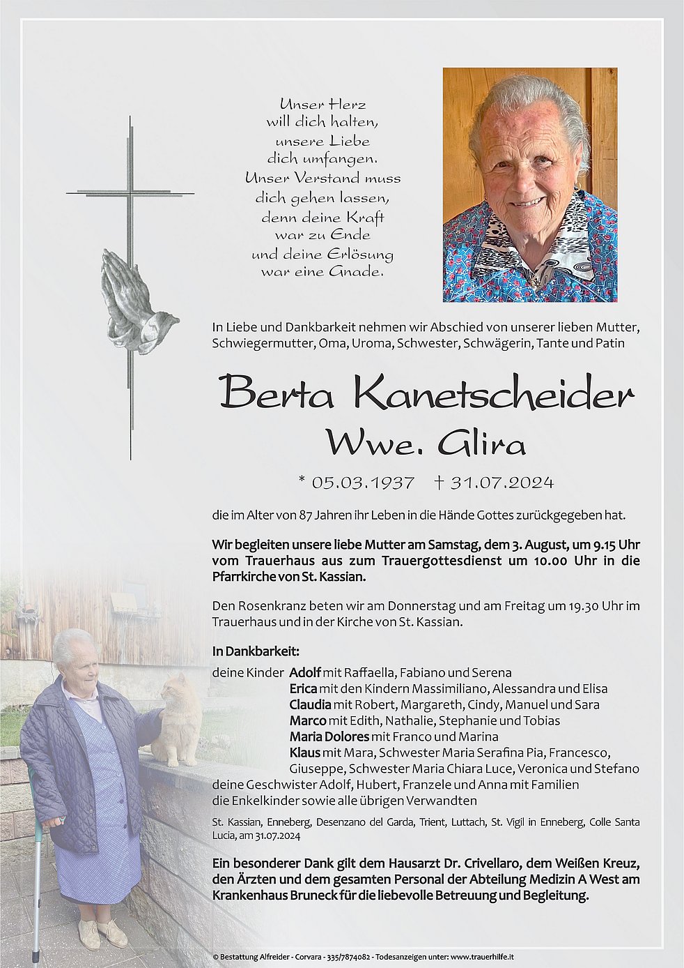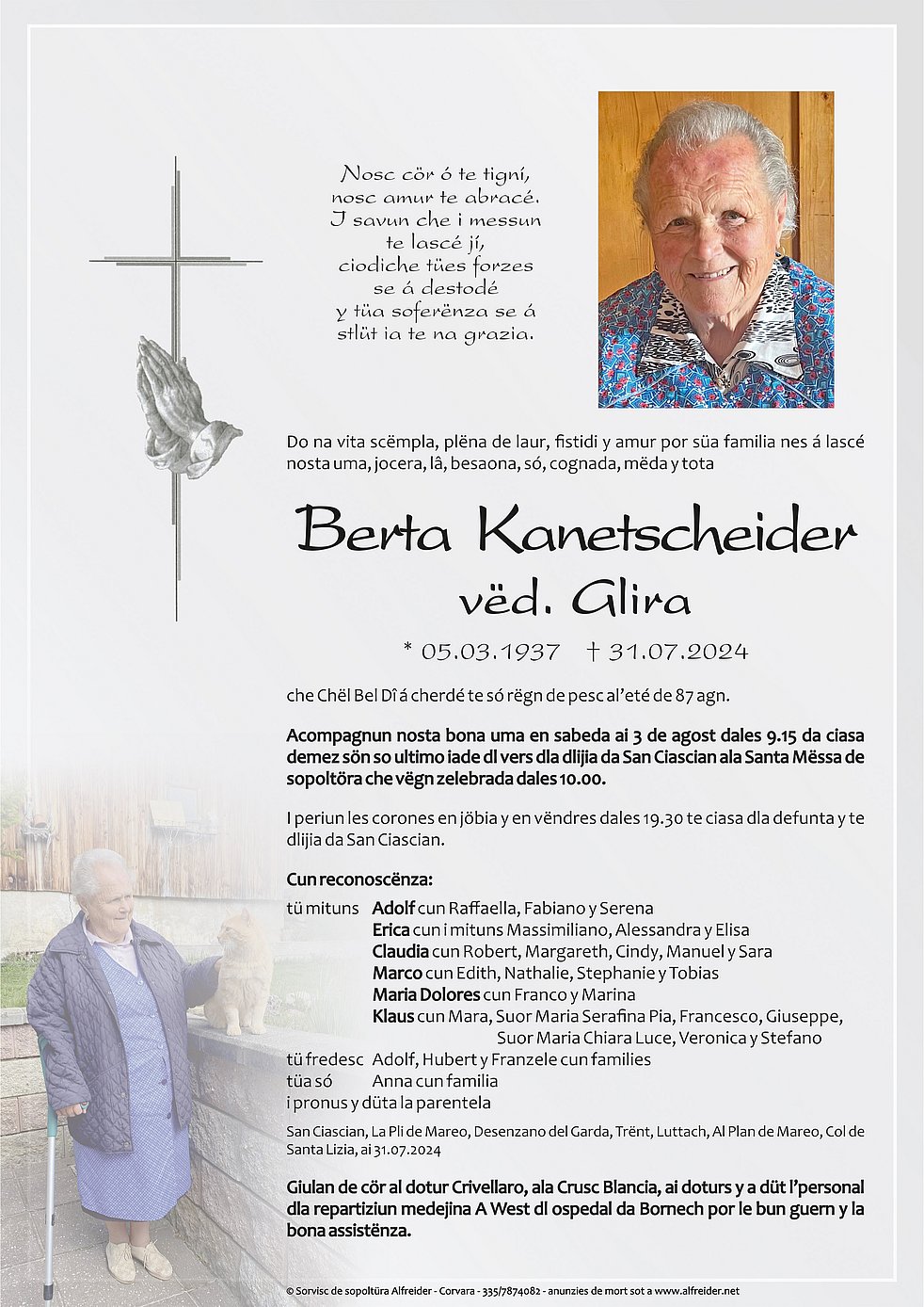 Begräbnisgottesdienst: 03.08. - 10:00 Uhr Pfarrkirche St. Kassian