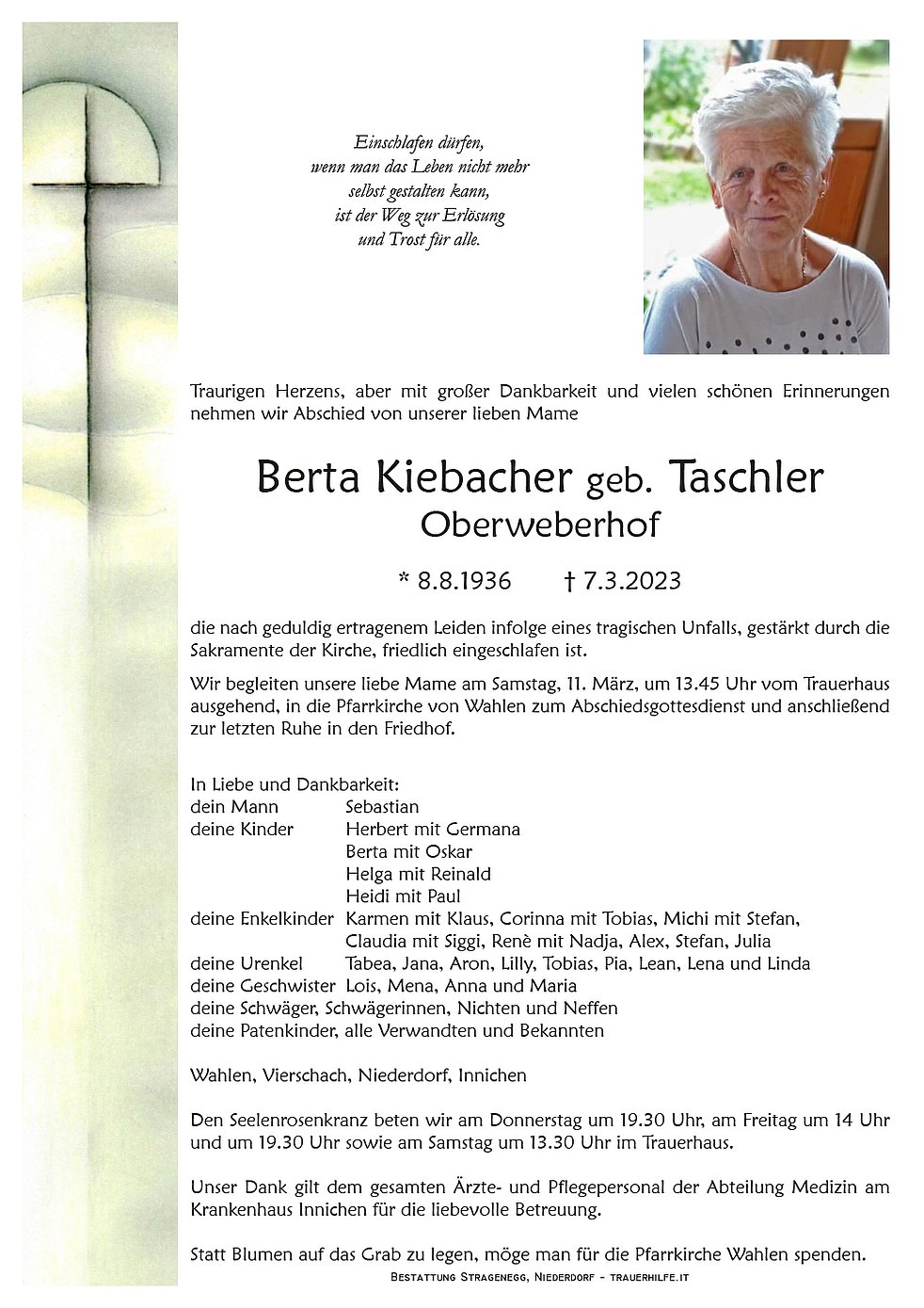 Liebe Helga.Der Verlust und das Loslassen einer geliebten Mutter schmerzt, mögen viele Engel mit hellen Lichtern sie auf dem letzten Weg begleiten.Aufrichtige Anteilnahme und viel Kraft dir und der ganzen Trauerfamilie,deine frühere Arbeitskollegin Margot.