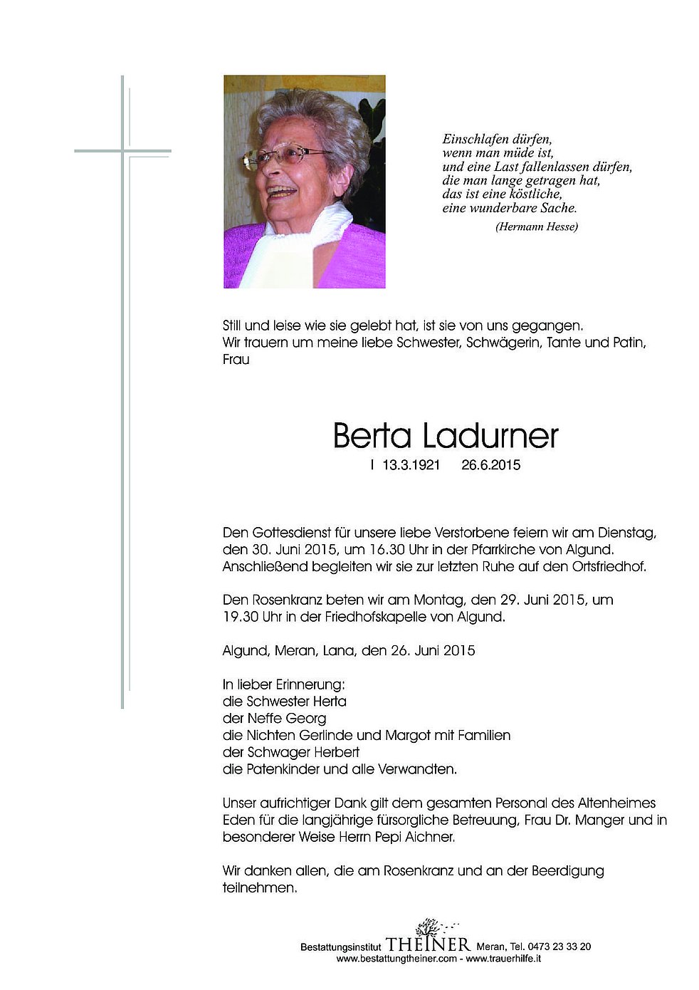 den 30. Juni 2015, um 16.30 Uhr in der Pfarrkirche von Algund.