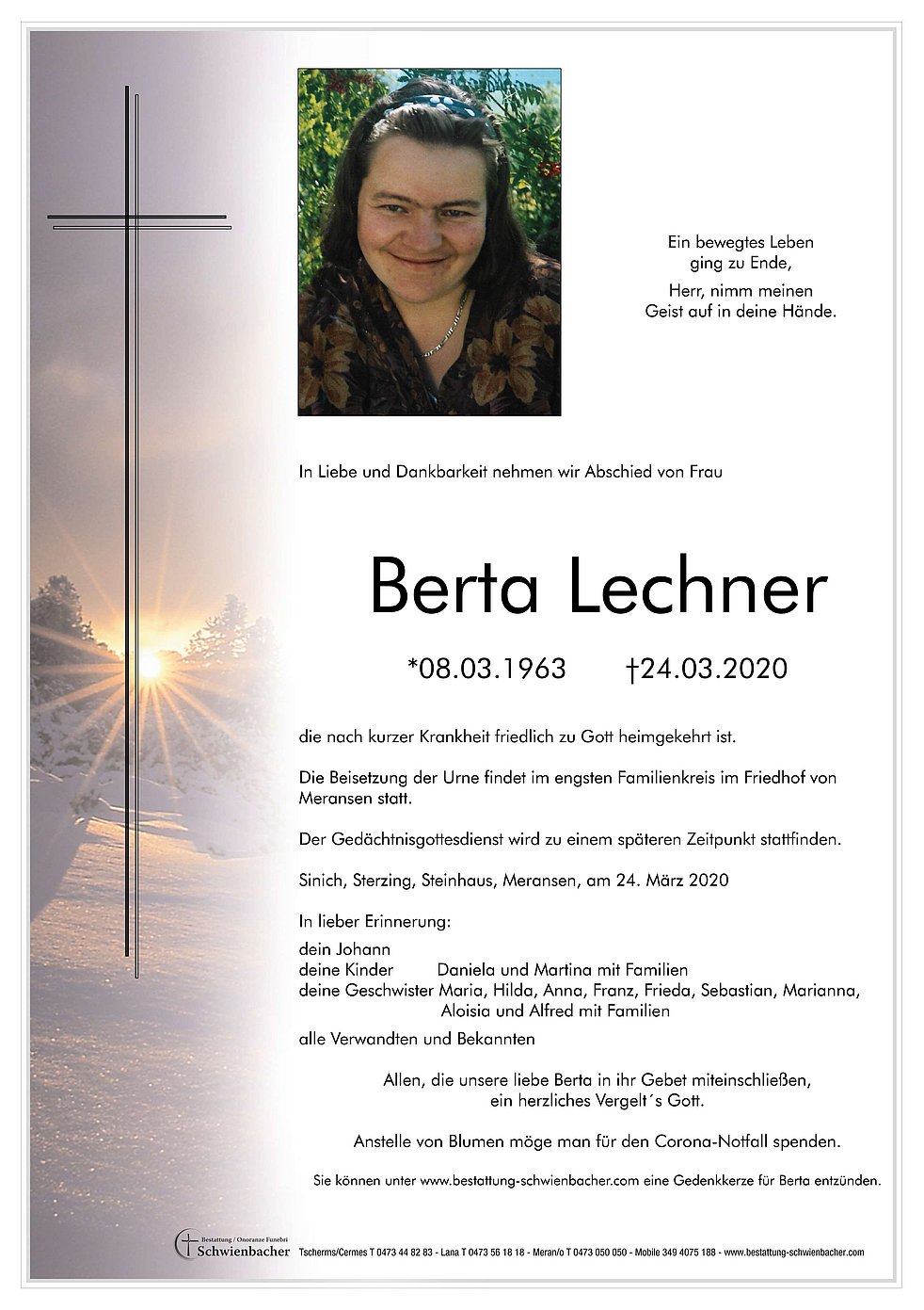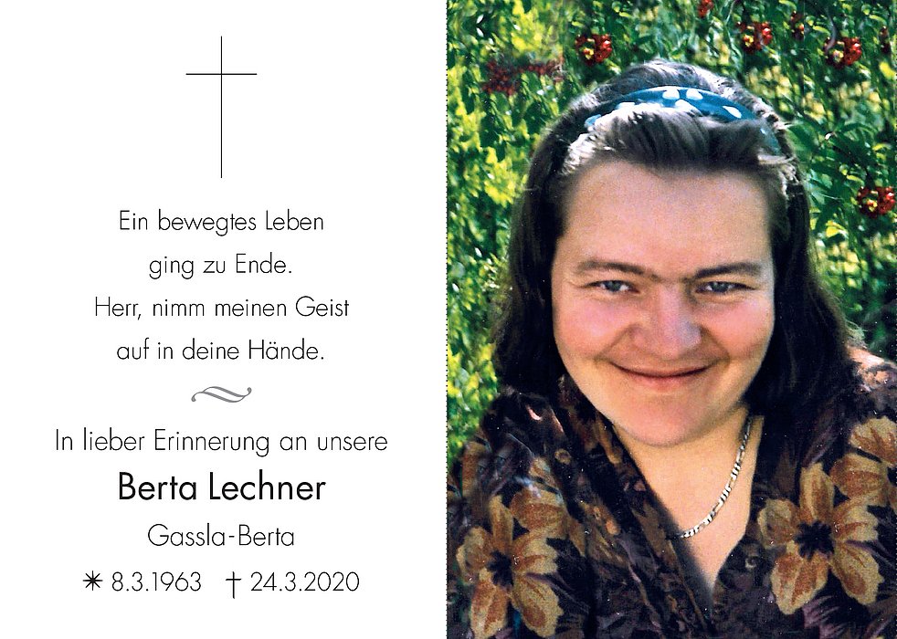 Sie können unter www.bestattung-schwienbacher.com eine Gedenkkerze für Berta entzünden.