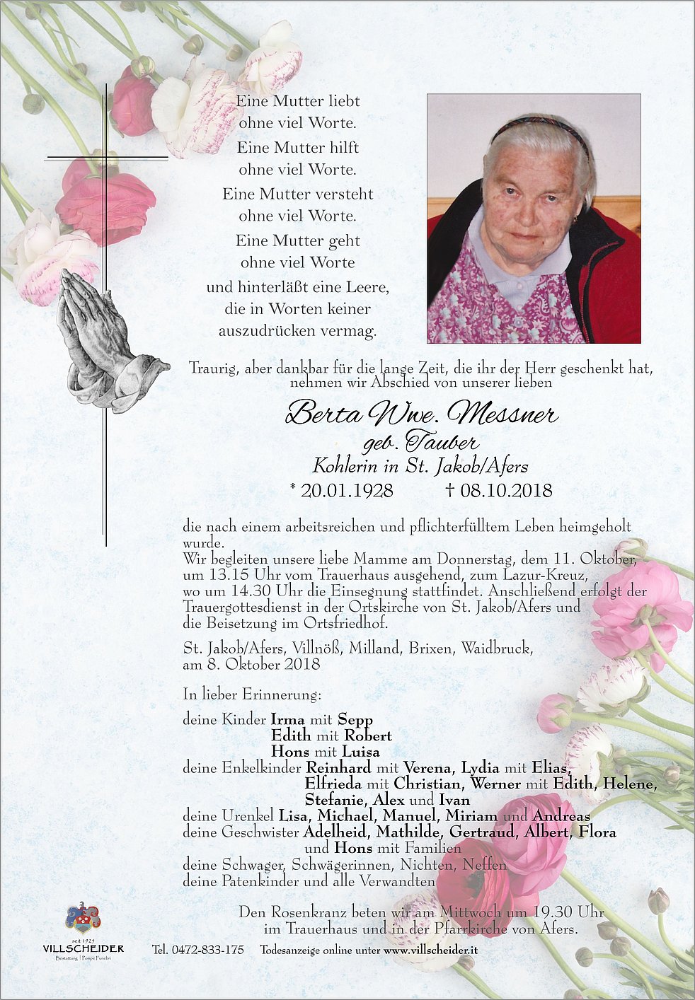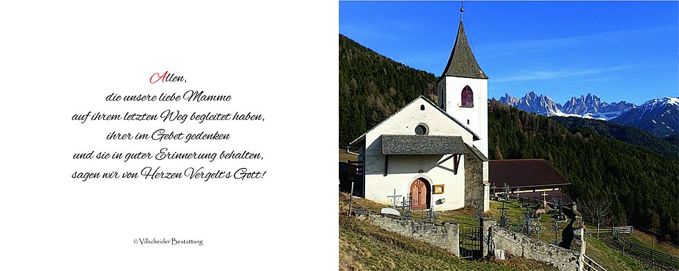 wo um 14.30 Uhr die Einsegnung stattfindet. Anschließend erfolgt der Trauergottesdienst in der Ortskirche von St. Jakob/Afers und