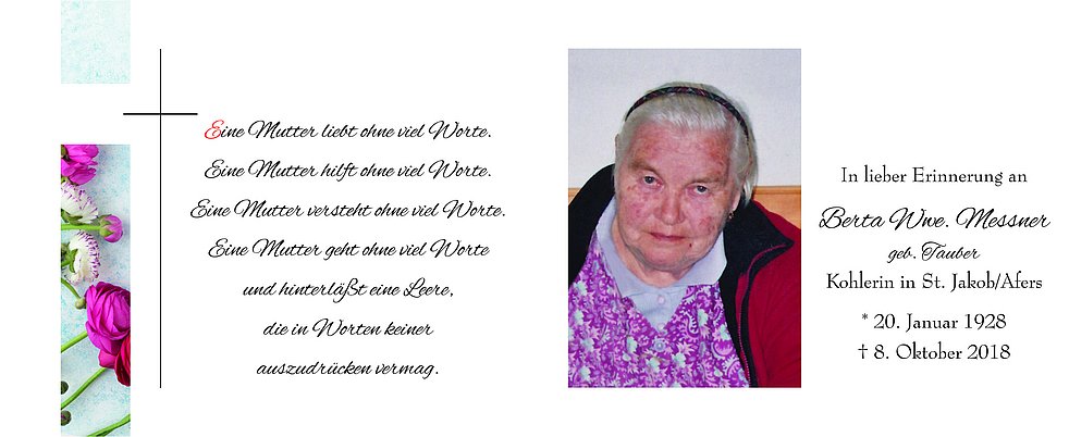 Wir begleiten unsere liebe Mamme am Donnerstag, dem 11. Oktober,