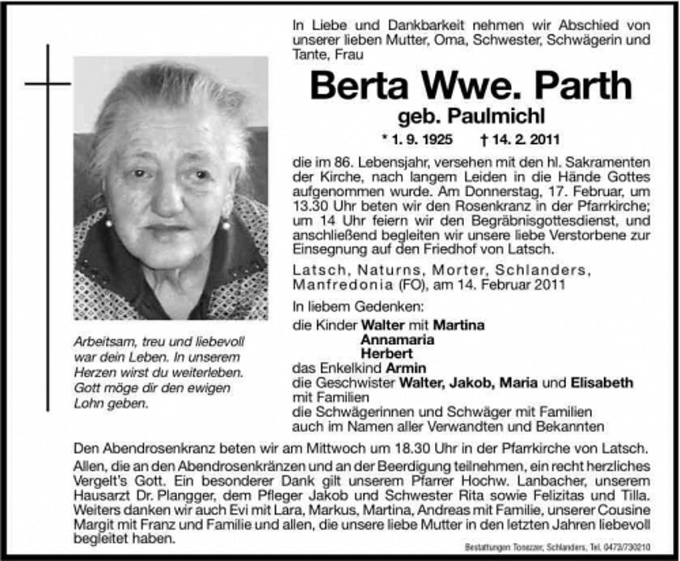 Berta Wwe. Parth geb. Paulmichl